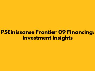 PSEinissanse Frontier 09: Financing & Investment Insights