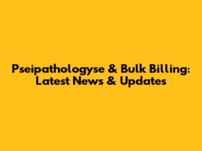 Pseipathologyse & Bulk Billing: Latest News & Updates