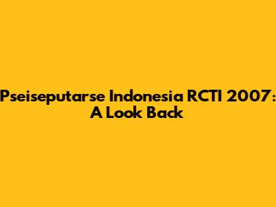 Pseiseputarse Indonesia RCTI 2007: A Look Back