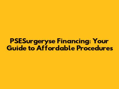 PSESurgeryse Financing: Your Guide To Affordable Procedures