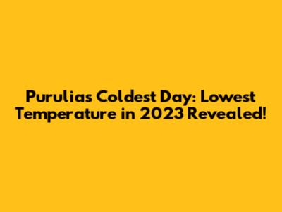 Purulia's Coldest Day: Lowest Temperature In 2023 Revealed!