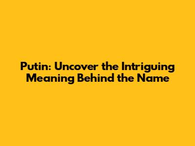 Putin: Uncover The Intriguing Meaning Behind The Name