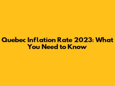 Quebec Inflation Rate 2023: What You Need To Know