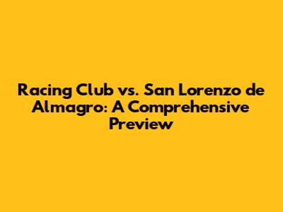 Hey guys! Get ready for an in-depth look at the upcoming clash between Racing Club and San Lorenzo de Almagro. This match promises excitement, strategy, and plenty of nail-biting moments. Whether you're a die-hard fan or just looking to place a smart bet, this preview has got you covered. Let's dive into what makes this game a must-watch!