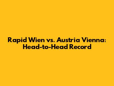 Rapid Wien Vs. Austria Vienna: Head-to-Head Record