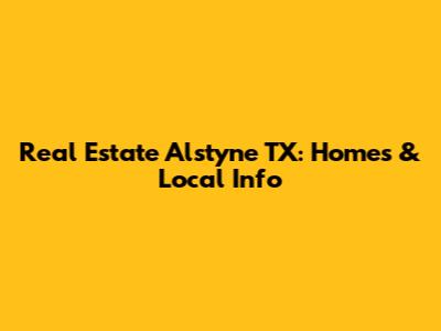 Hey guys! Are you looking into the real estate scene in Alstyne, Texas? Well, buckle up because we're about to dive deep into everything you need to know about finding your dream home in this awesome town. From cozy neighborhoods to the latest market trends, we've got you covered. Let’s get started!