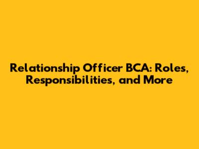 Relationship Officer BCA: Roles, Responsibilities, And More