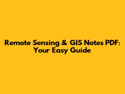 Remote Sensing & GIS Notes: Your Easy PDF Guide
