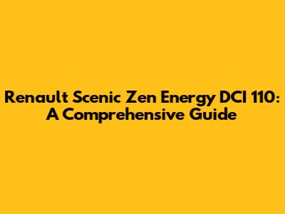 Renault Scenic Zen Energy DCI 110: A Comprehensive Guide