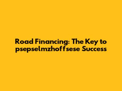 Road Financing: The Key To Psepselmzhoffsese Success