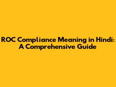 ROC Compliance: A Simple Explanation In Hindi