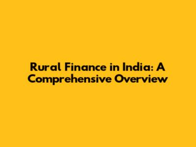 Rural Finance In India: A Comprehensive Overview