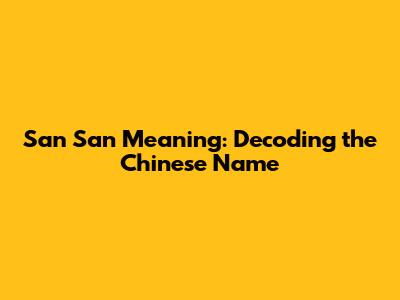 San San Meaning: Decoding The Chinese Name