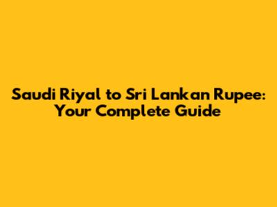 Saudi Riyal To Sri Lankan Rupee: Your Complete Guide