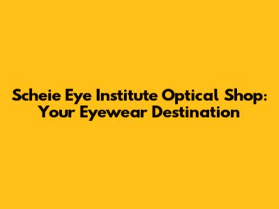 Scheie Eye Institute Optical Shop: Your Eyewear Destination
