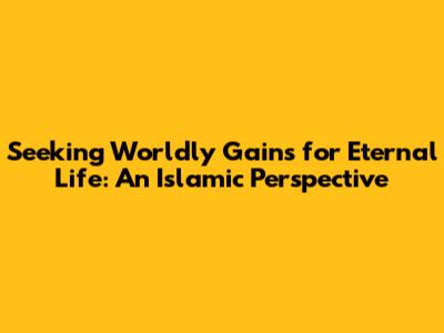 Seeking Worldly Gains For Eternal Life: An Islamic Perspective