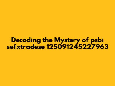 Let's get down to brass tacks, shall we? What could psbi sefxtradese 125091245227963 actually mean? The most common possibilities revolve around the following: