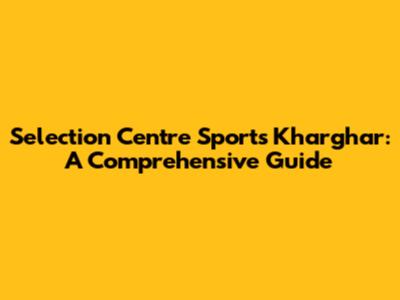 Selection Centre Sports Kharghar: A Comprehensive Guide
