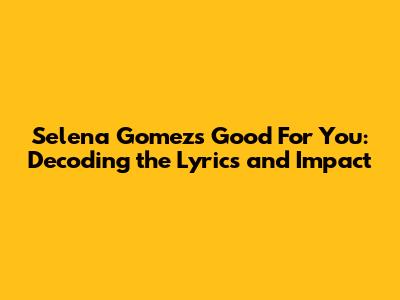 Selena Gomez's 'Good For You': Meaning, Translation, And Impact