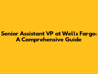 Senior Assistant VP At Wells Fargo: Roles And Responsibilities