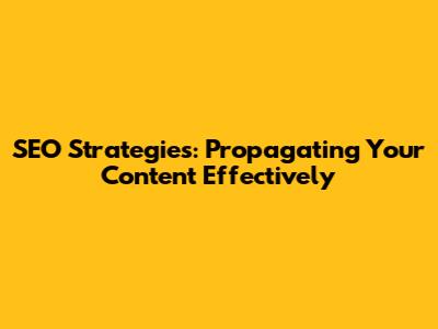 SEO Strategies: Propagating Your Content Effectively