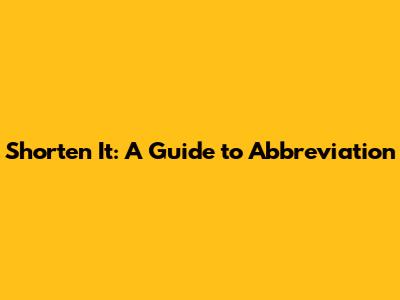 Shorten It: A Guide To Abbreviation