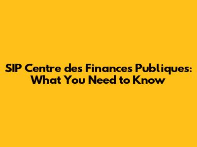 SIP Centre Des Finances Publiques: What You Need To Know