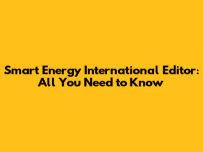 Smart Energy International Editor: All You Need To Know