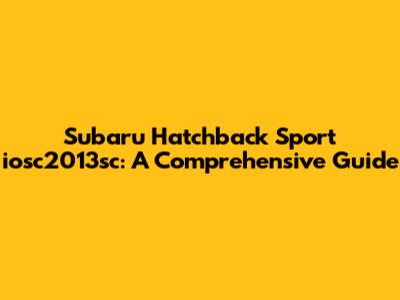 Subaru Hatchback Sport Iosc2013sc: A Comprehensive Guide