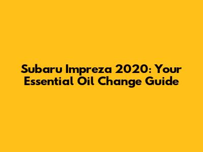 Subaru Impreza 2020: Your Essential Oil Change Guide