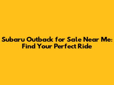 Subaru Outback For Sale Near Me: Find Your Perfect Ride