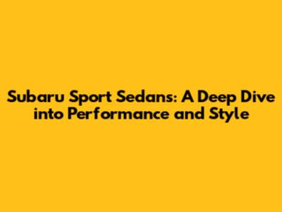 Subaru Sport Sedans: Your Guide To Performance And Style