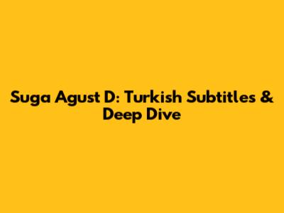 Suga Agust D: Turkish Subtitles & Deep Dive