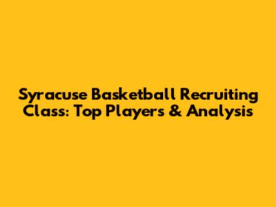 Syracuse Basketball Recruiting Class: Top Players & Analysis