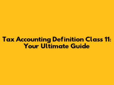 Tax Accounting: Your Class 11 Guide