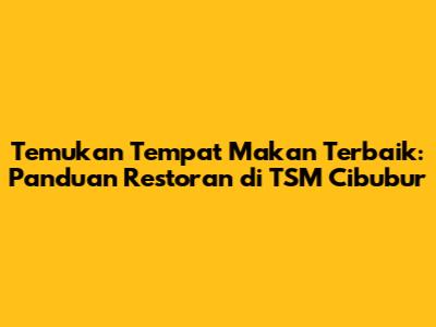 Temukan Tempat Makan Terbaik: Panduan Restoran Di TSM Cibubur