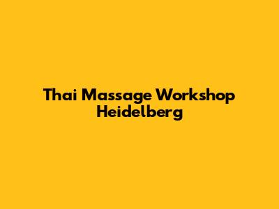 Thai Massage Workshop In Heidelberg: Learn Today!