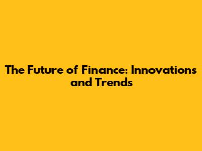The Future Of Finance: Innovations And Trends