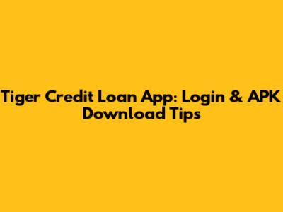 Tiger Credit Loan App: Login & APK Download Tips