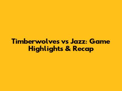 Timberwolves Vs Jazz: Game Highlights & Recap