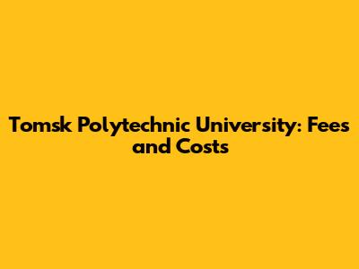Tomsk Polytechnic University: Fees And Costs