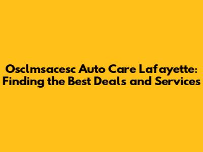 Finding the best deals on Osclmsacesc Auto Care Lafayette requires a bit of research and planning. Here are some strategies to help you save money without compromising on quality: