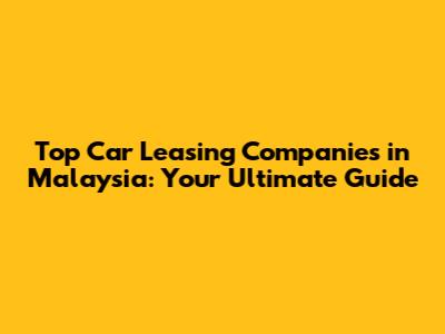 Top Car Leasing Companies In Malaysia: Your Guide