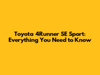 Toyota 4Runner SE Sport: Everything You Need To Know
