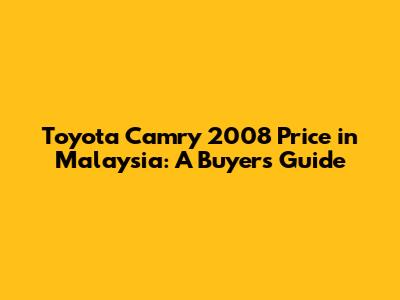 Toyota Camry 2008 Price In Malaysia: A Buyer's Guide