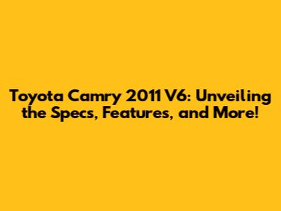Toyota Camry 2011 V6: Specs, Features & More!