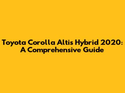 Toyota Corolla Altis Hybrid 2020: A Comprehensive Guide