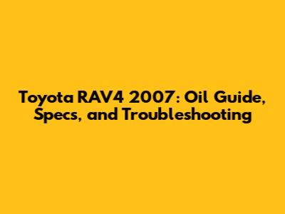 Toyota RAV4 2007: Oil Guide, Specs, And Troubleshooting