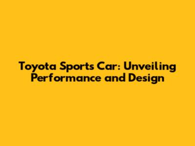 Toyota Sports Car: Specs, Performance & More!
