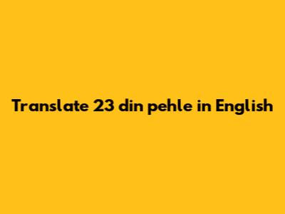 Translate '23 Din Pehle' To English: A Quick Guide